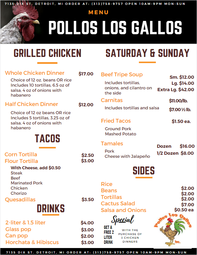 Welcome to Pollos Los Gallos, a hidden gem nestled in Detroit’s vibrant landscape. This eatery specializes in authentic Mexican fare, primarily showcasing their unforgettable wood-fired mesquite grilled chicken, hailed by patrons as the best in town.